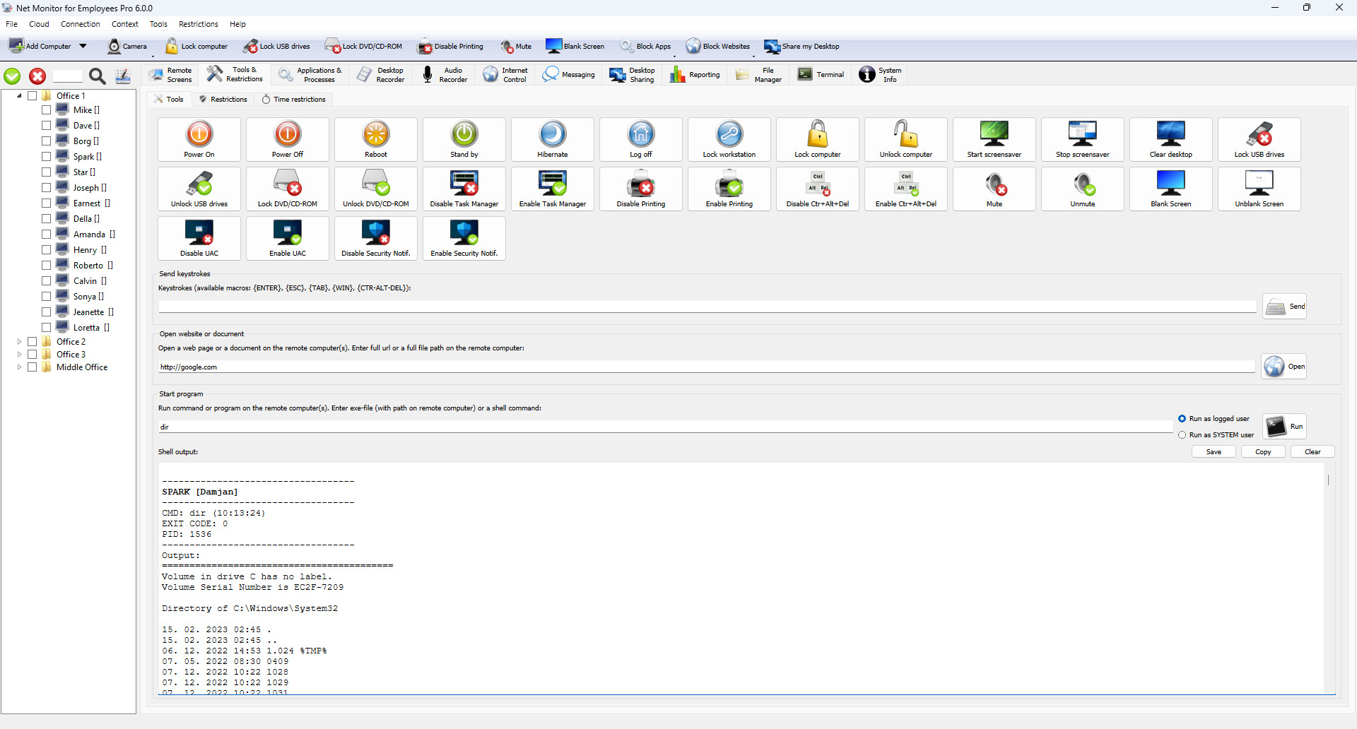 بالإضافة إلى ذلك ، يمكنك أيضا تنفيذ أوامر shell (CMD) وإرسال ضغطات المفاتيح إلى جميع أجهزة الكمبيوتر المحددة وغير ذلك الكثير.